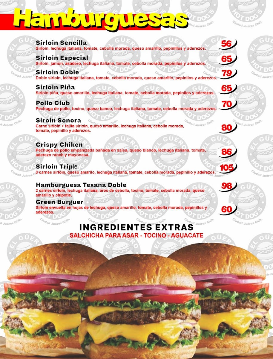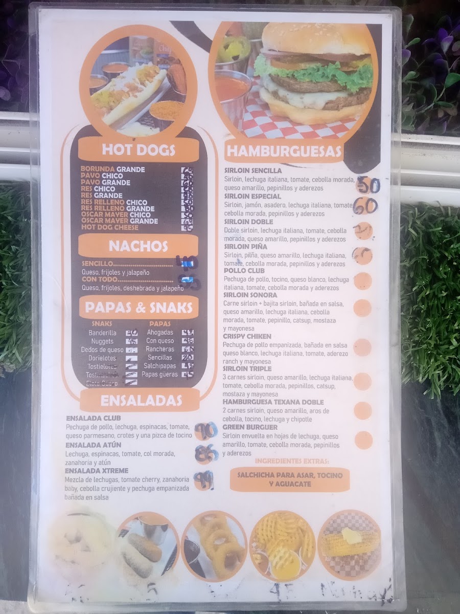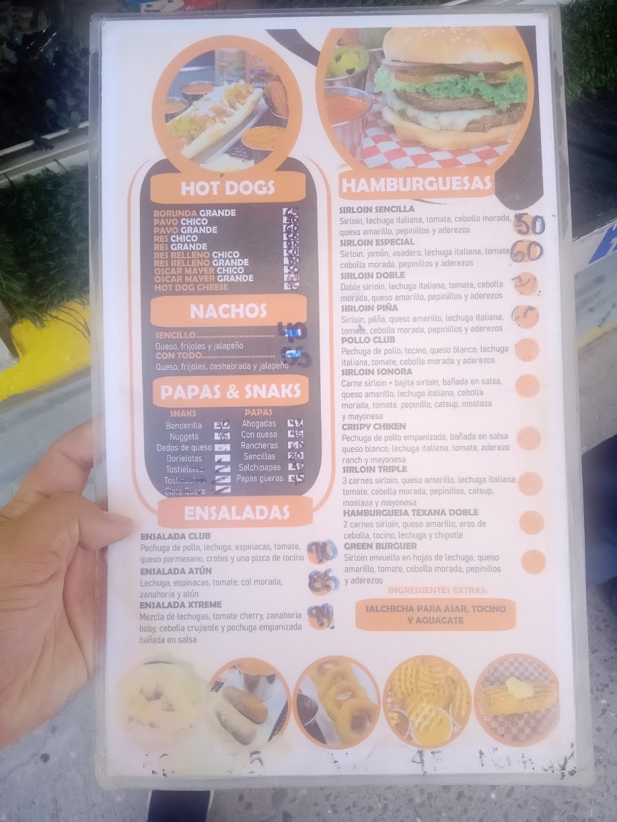 From a reviewer's perspective, the menu at Hot Dogs El Güero on Iztaccihuatl offers a lively and indulgent variety that caters to both casual diners and hearty appetites. The potato selections, including Papas Ahogadas, Papas Con Queso Fundido, Papas Sencillas, and Papas Rancheras, provide flavorful sides or standalone treats. For those craving fried delights, the Charola Boneless and Charola Boneless Doble are generous servings of crispy boneless chicken, while the Snack's section, featuring Nuggets, Banderillas, and Dedos De Queso, adds playful finger-food options. Sandwich lovers are well-covered with choices like Sándwich De Pollo, Sándwich Clásico, Sándwich Club, Sándwich De Atún, and Sándwich Sencillo, all balancing variety and comfort. Breakfast enthusiasts can enjoy combinations such as Combo 3, Combo 4, Combo 5, Combo 6, and Combo 7, ensuring a filling start to the day. The nacho offerings-Nachos Con Todo and Nachos Sencillos-stand out for generous toppings and satisfying crunch. Burger options, including Hamburguesa Sirloin Piña, Hamburguesa Sirloin Pollo Club, and Hamburguesa Sirloin Sencilla, pair perfectly with Papas Fritas or Papas Con Queso, delivering classic indulgence. Of course, the hot dogs themselves are the star, ranging from Hot Dog Pavo Chico and Hot Dog Pavo Grande to Hot Dog Res Chico, Hot Dog Res Grande, and Hot Dog Res Relleno Chico and Grande, offering hearty, flavorful variations that keep the menu exciting. Overall, the menu strikes a balance between comfort food staples and inventive twists, making Hot Dogs El Güero a go-to spot for a casual yet satisfying meal in Juárez.